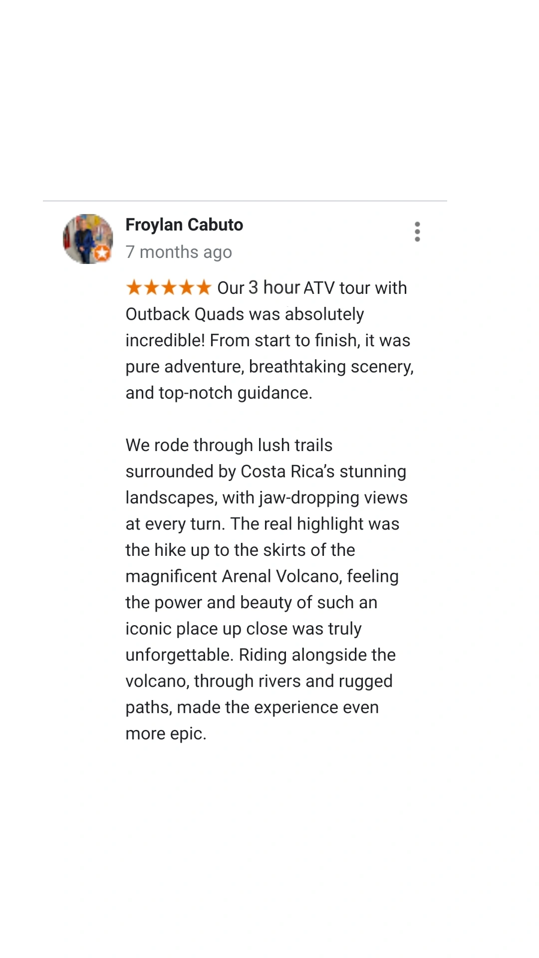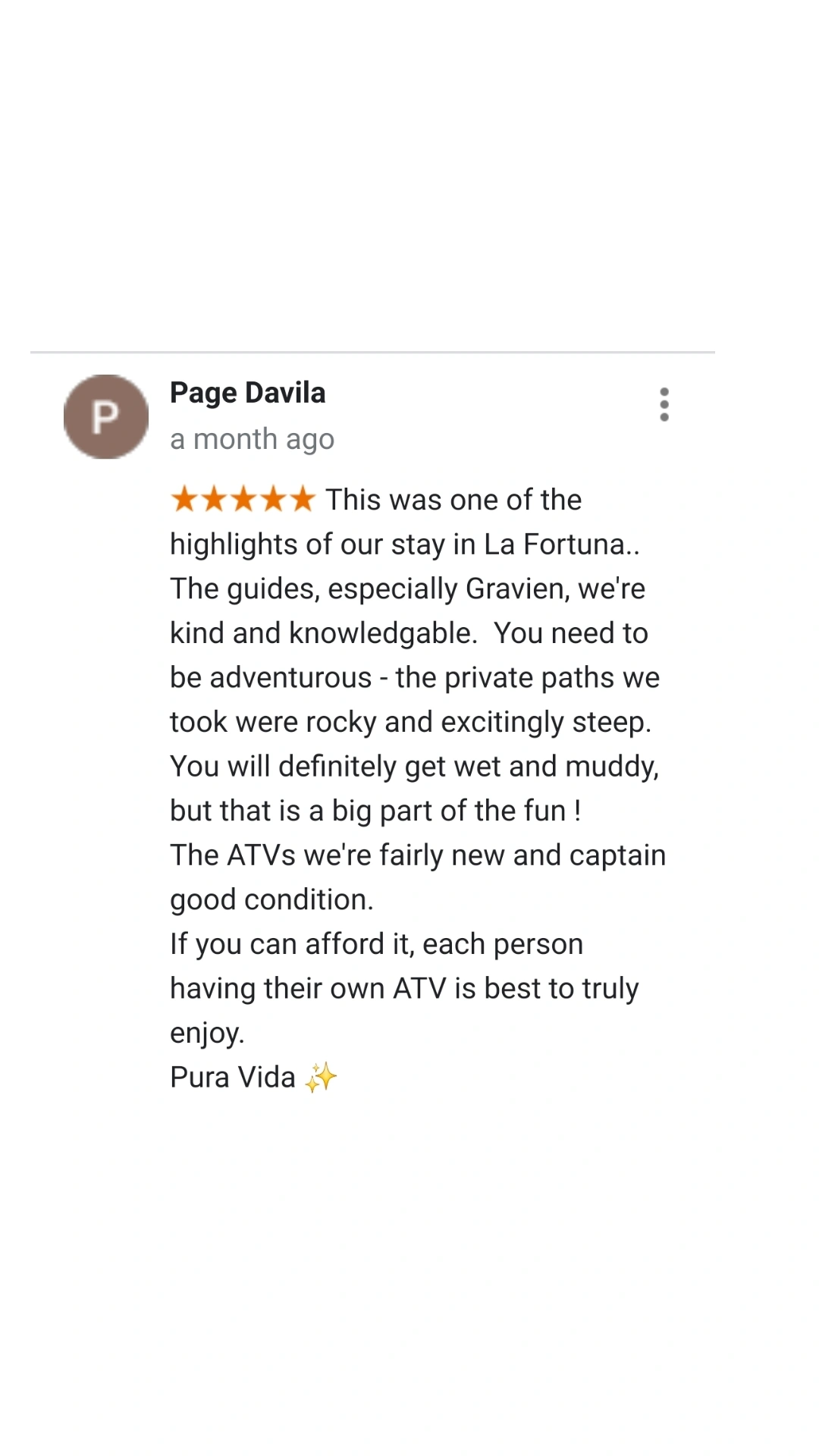 🌿 Ride deep into the rainforest, cross rivers, and climb volcanic foothills on one of La Fortuna’s most scenic off-road tours. Whether you ride solo, double, or share a Side-by-Side, this adventure takes you places that feel like they were made for a movie (you know the one 😉). 🛞 Choose between a 2-hour jungle tour, a 3-hour volcano adventure, or a 3-hour Side-by-Side ride— ALL FEES & TAXES INCLUDED. Limited availability. Book early! Departs daily: ⏰ 8:00 AM · 10:00 AM · 1:00 PM · 3:00 PM 🌟 OPTION 1 🌟 2-HOUR JUNGLE ATV TOUR • Single ATV (1 person per ATV) and/or • Double ATV (2 people per ATV) Ride through rainforest trails and riverbeds, stopping at the scenic Monterrey Viewpoint and the Maleku Indigenous Village for a genuine cultural experience. Perfect for those who want a taste of the wild in just a couple of hours. 🚀 OPTION 2 🚀 3-HOUR VOLCANO ATV TOUR • Single ATV (1 person per ATV) and/or • Double ATV (2 people per ATV) Includes everything in the 2-hour tour — plus an extra hour riding up to the volcanic foothills on rugged lava rock, with more time to explore, take photos, and enjoy panoramic views few ever see. 🔥OPTION 3🔥 3-HOUR SIDE-BY-SIDE TOUR • Flat fee: (up to 6 people per vehicle) Share the ride! This off-road Side-by-Side tour includes scenic trails, El Congo Waterfall, the Monterrey Viewpoint, a volcanic lagoon, and an optional Tarzan Swing. Perfect for families or groups who want to ride together. 🎒 WHAT TO BRING: • Valid driver’s license (for ATV/Side-by-Side drivers) • Closed-toe shoes • Bathing suit or clothes you don’t mind getting wet (under your outfit) • Comfortable clothing & sunscreen • A sense of adventure! ✅ EVERY TOUR INCLUDES: • Certified professional guides • Helmet & safety gear • Test ride before departure • Biosecurity protocols • Hotel pickup & drop-off (select areas) • Optional river swim (weather permitting) ⚠️ RESTRICTIONS: • Minimum age: 5 (passengers) • Max rider weight: 310 lbs • No alcohol or drugs before riding • Not recommended during pregnancy READY TO RIDE? Click BOOK NOW or message us to reserve your spot on this unforgettable ride through Costa Rica’s untamed beauty.